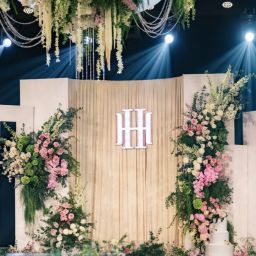 - Backdrop hoa tươi kết hợp ánh sáng nghệ thuật.