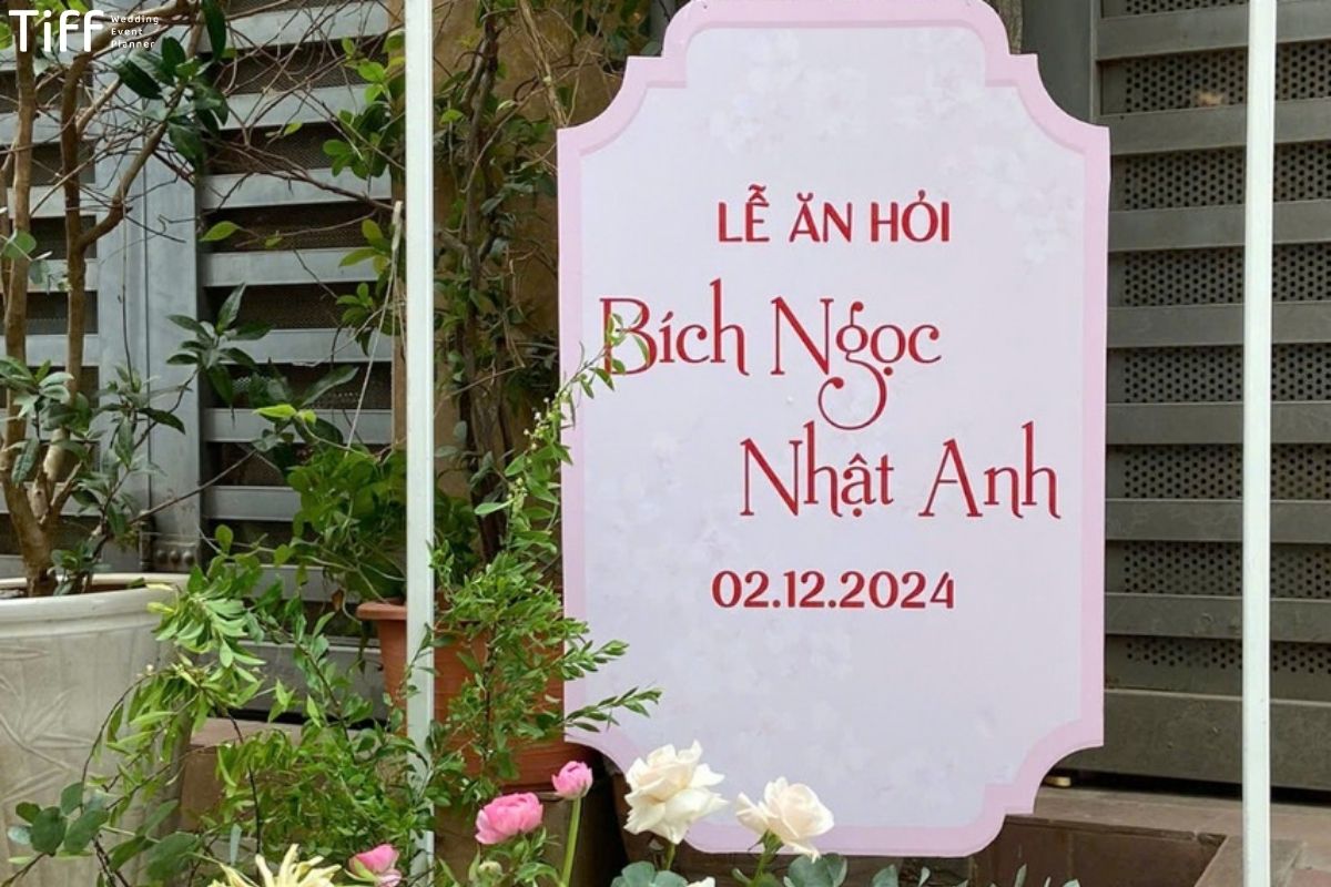 Ngoài ra, TIFF Wedding Planner còn tư vấn đa dạng lựa chọn chất liệu thi công để phù hợp từng địa điểm và điều kiện ngân sách, từ formex, mica đến bảng welcome gỗ mang cảm giác ấm áp và tự nhiên. Nhờ kinh nghiệm triển khai nhiều concept khác nhau, TIFF Wedding Planner hiểu rõ cách phối màu, chọn font chữ, kích thước và vị trí đặt Bảng welcome đám cưới sao cho thu hút, dễ nhìn, đồng thời hỗ trợ tốt cho việc đón tiếp khách và chụp hình check in.