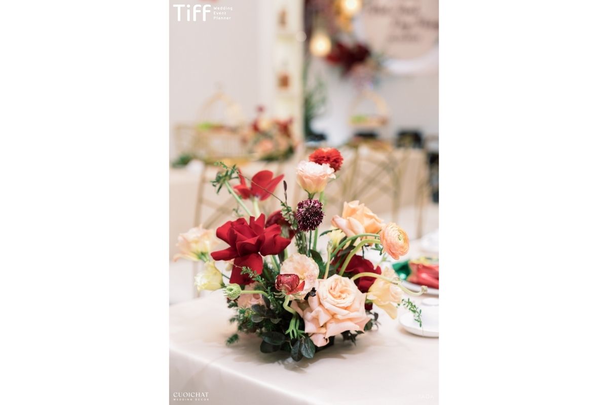 TIFF Wedding Planner là đơn vị chuyên tổ chức và trang trí cưới trọn gói, đồng hành cùng nhiều cặp đôi tại Việt Nam từ khâu lên ý tưởng đến vận hành ngày cưới. Với đội ngũ planner và florist giàu kinh nghiệm, TIFF Wedding Planner không chỉ xử lý tốt timeline, ngân sách mà còn chăm chút từng chi tiết nhỏ trên bàn tiệc để mỗi mẫu hoa để bàn cưới đẹp đều đúng mong muốn của cô dâu chú rể.