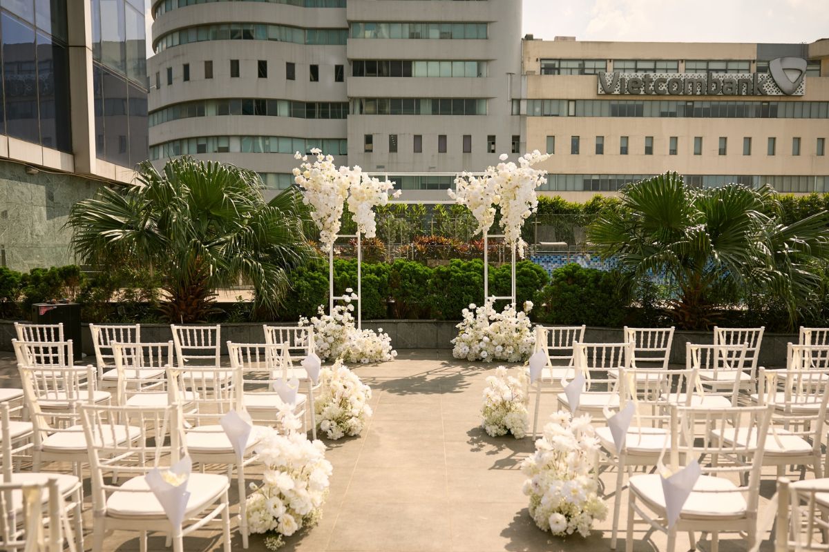 - Đa dạng concept và phong cách trang trí: Từ lễ cưới hiện đại, sang trọng đến phong cách romantic, boho hoặc minimalist, Novotel Thái Hà có thể hiện thực hóa mọi ý tưởng sáng tạo của cặp đôi. Đội ngũ trang trí sẽ tư vấn màu sắc, chủ đề, hoa tươi và ánh sáng sao cho phù hợp với không gian và cá tính của hai bạn.