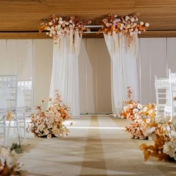 Thiết kế hài hòa: Sử dụng hoa tươi, phông nền đơn giản hoặc rèm nhẹ nhàng để làm nổi bật không gian.