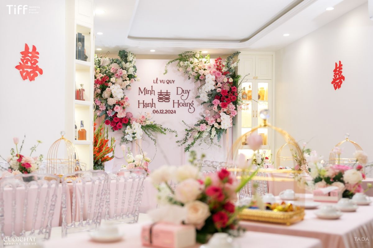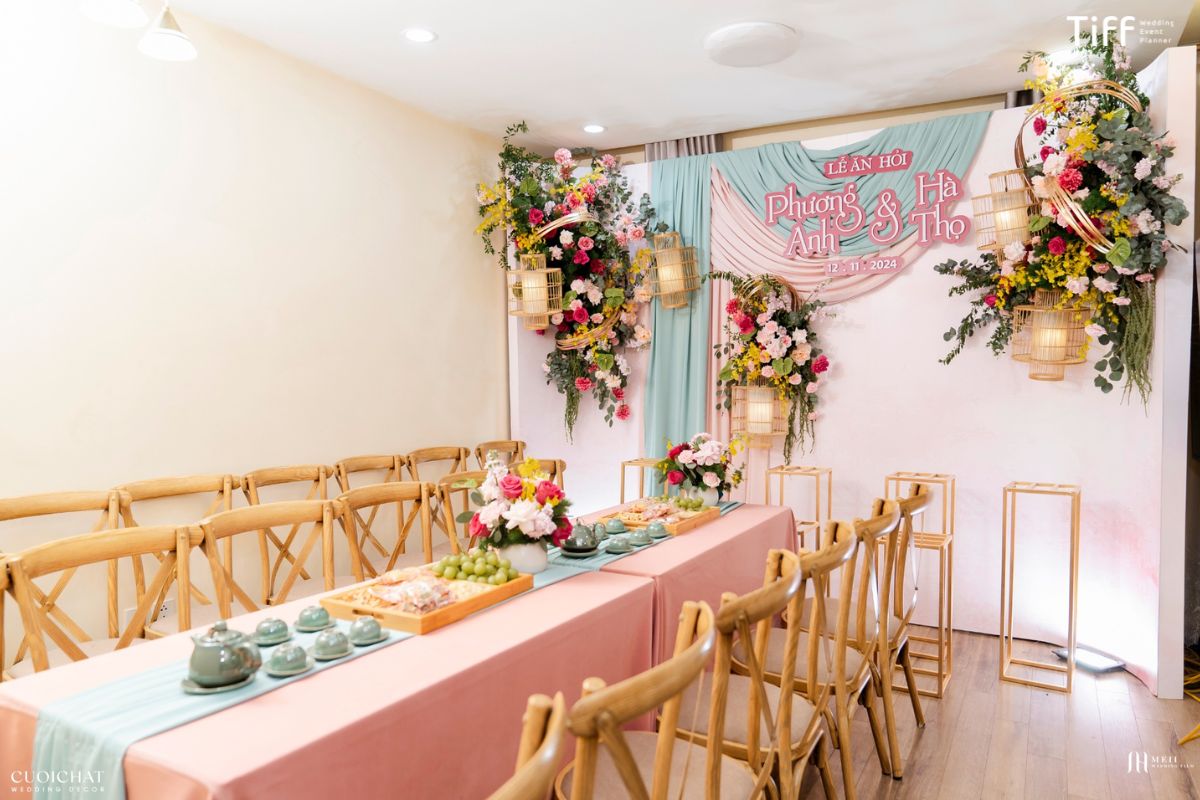 Chi phí thường dao động từ vài triệu đến vài chục triệu, tùy theo yêu cầu cụ thể và quy mô tiệc. TIFF cung cấp đa dạng mẫu trang trí tiệc cưới tại nhà đẹp từ đơn giản – tinh tế đến cầu kỳ – sang trọng.