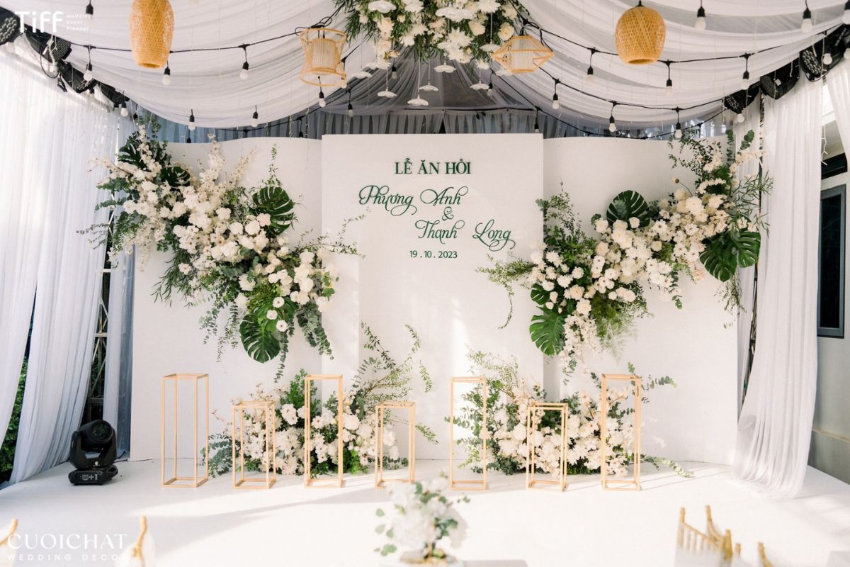 Chi phí có thể chênh lệch nếu bạn thay đổi vật liệu trang trí.Ví dụ, cùng một mẫu backdrop trong tư gia nhưng sử dụng hoa lụa thay vì hoa tươi sẽ có mức giá khác biệt rõ rệt. TIFF luôn báo giá rõ ràng dựa trên hình ảnh trang trí tiệc cưới tư gia bạn lựa chọn, giúp bạn kiểm soát tốt ngân sách và không phát sinh bất ngờ.