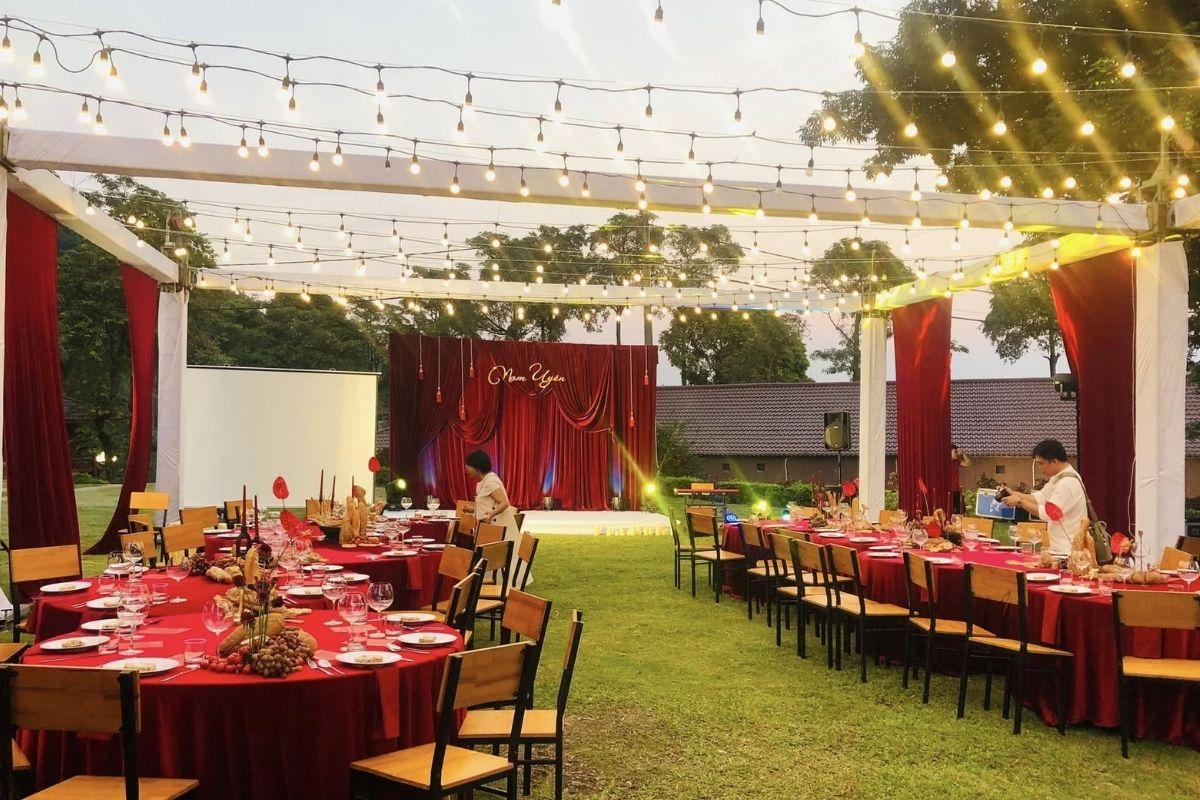 - Do tiệc cưới thường yêu cầu nhiều setup hơn (trang trí, âm thanh, ánh sáng, sân khấu…), chi phí thuê venue tiệc cưới ngoài trời hoặc không gian đặc biệt có thể cao hơn mức hội nghị cơ bản.