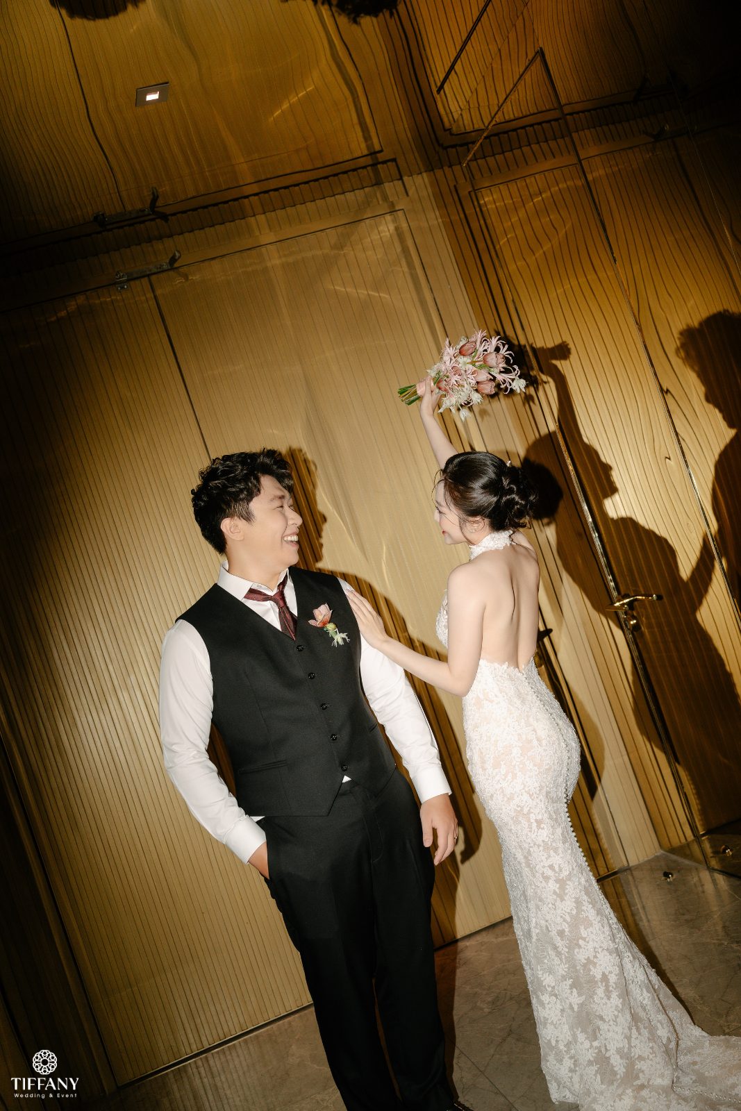 Lễ cưới của Tú & Hưng tại JW Marriott Saigon được TIFF mở ra bằng khoảnh khắc First Look, như một lời chào nhẹ nhàng cho hành trình cảm xúc trong ngày trọng đại. Không gian phủ sắc hồng champagne dịu dàng được đội ngũ TIFF chủ ý xây dựng để giữ trọn sự riêng tư, nơi từng chi tiết đều được nâng niu như chính câu chuyện tình yêu của hai bạn. Không phô trương, không ồn ào, chỉ có cảm xúc thuần khiết được lan tỏa qua từng cánh hoa, ánh đèn và những khoảnh khắc lặng yên trước giờ cử hành.