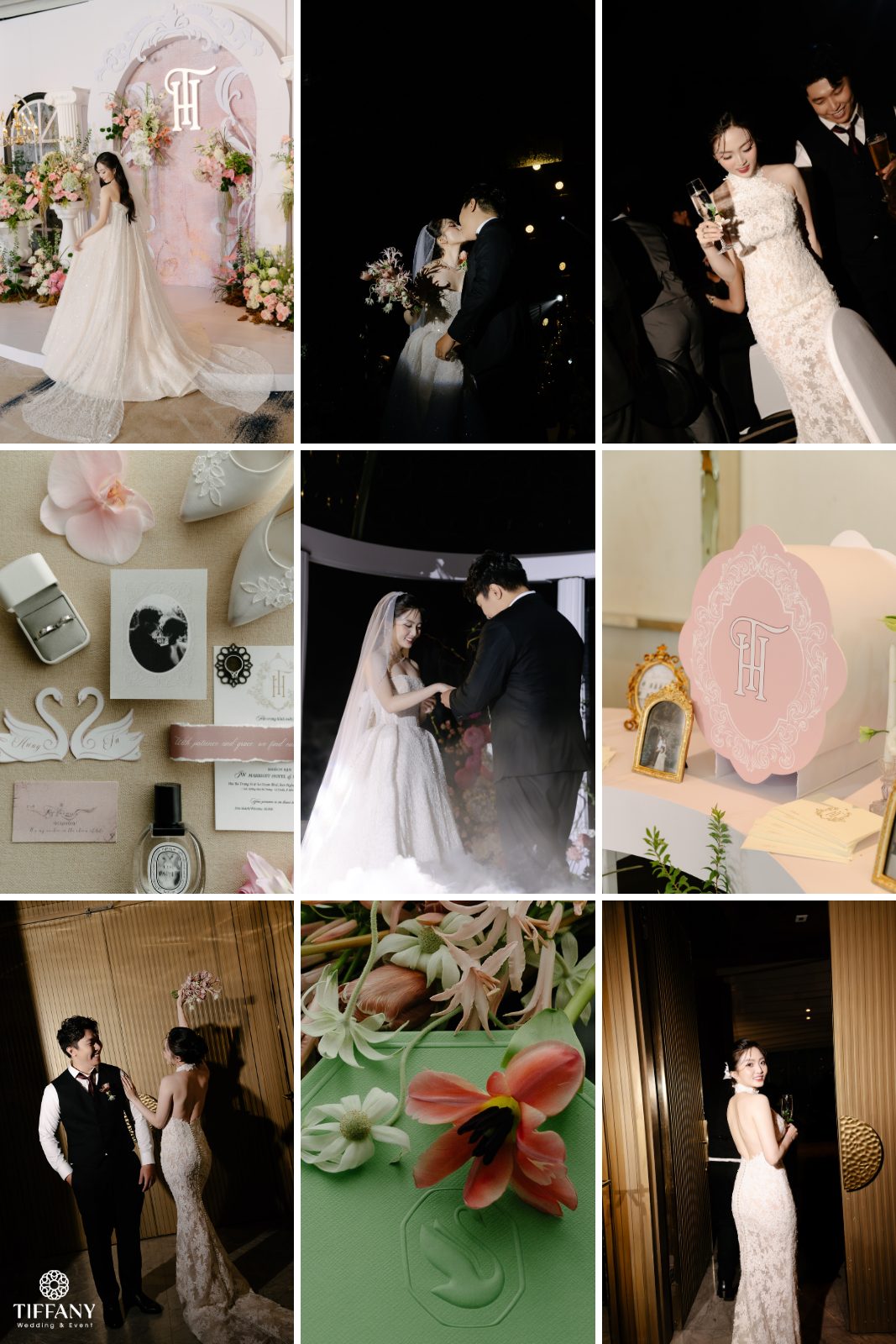 Trong khu vườn mơ mộng ấy, mọi chi tiết đều được đội ngũ TIFF chăm chút bằng sự tỉ mỉ của một wedding planner. Từ tạo hình vòm mái cổ điển đến cách hoa pastel được sắp đặt khéo léo, tất cả cùng hòa quyện để tạo nên một không gian sang trọng nhưng không phô trương, tinh tế mà vẫn đầy cảm xúc.