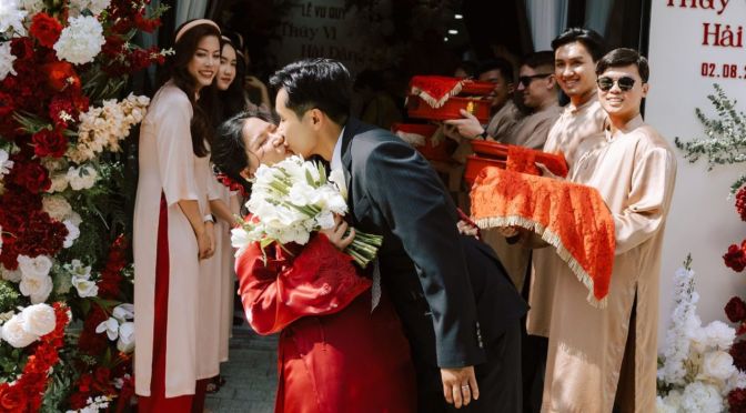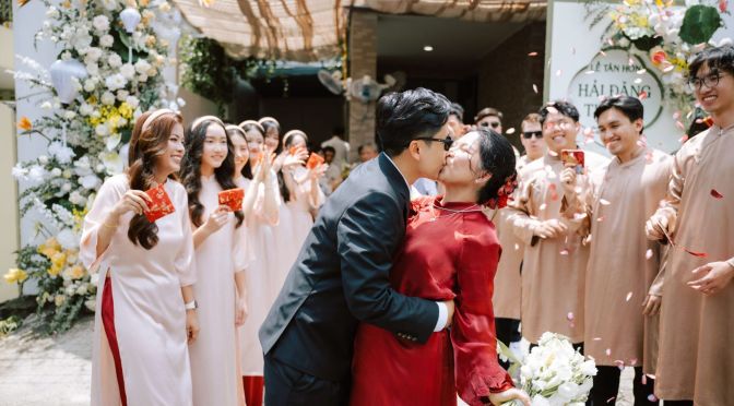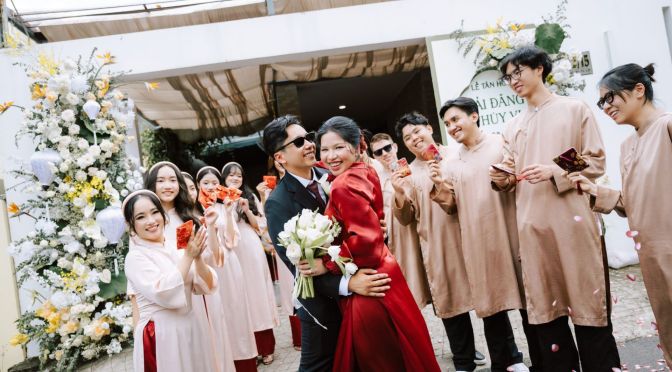 Mỗi màu sắc trong ngày cưới đều mang theo một tầng ý nghĩa riêng: xanh cho bình yên, trắng cho khởi đầu trọn vẹn, vàng cho niềm vui viên mãn, và đỏ – sắc màu của hạnh phúc và gắn kết.