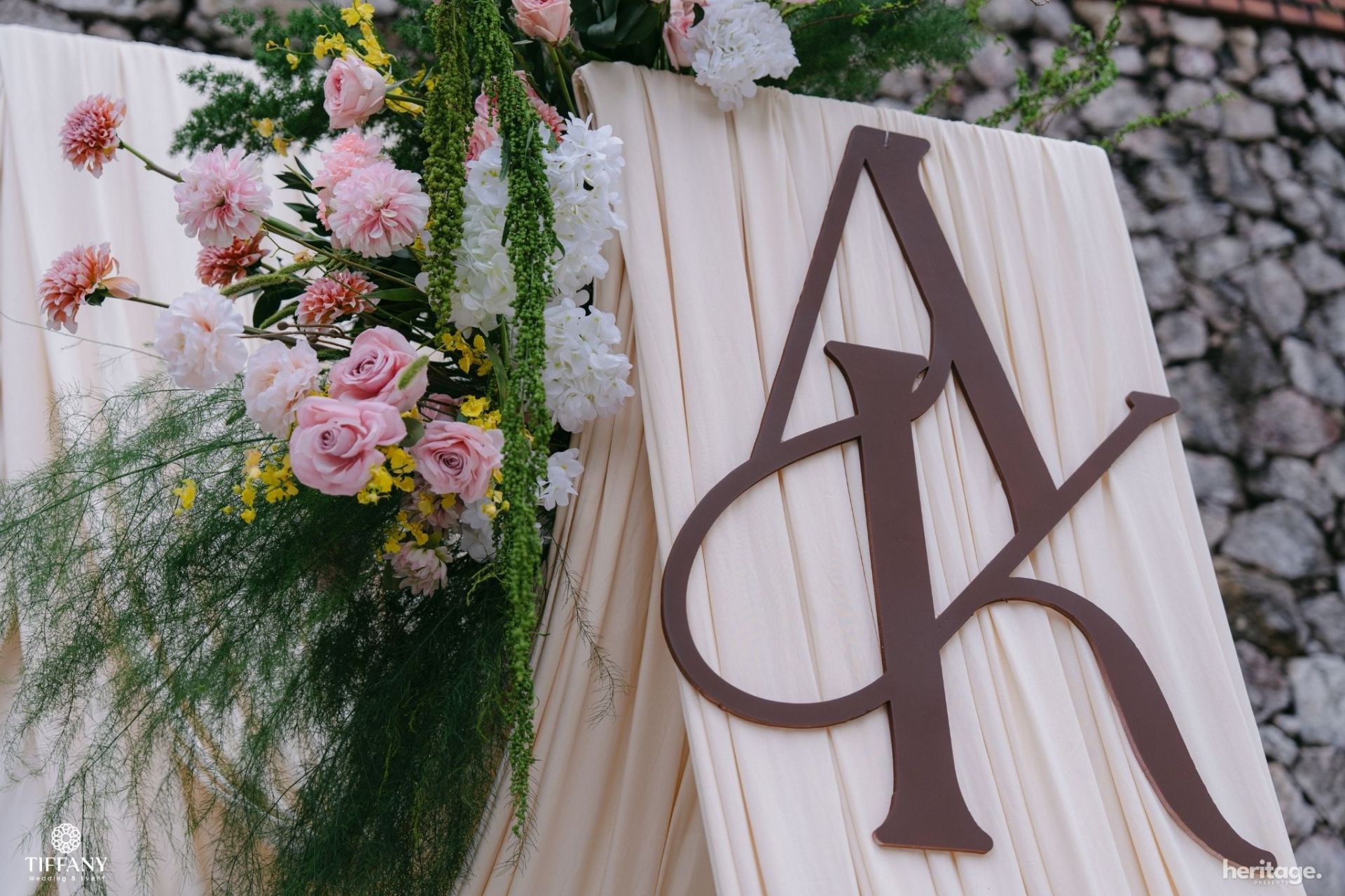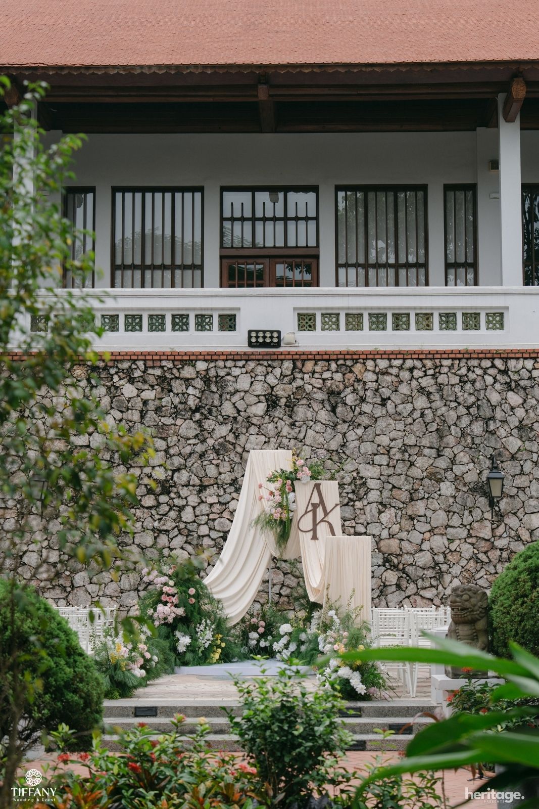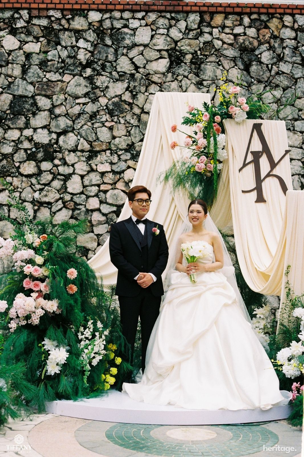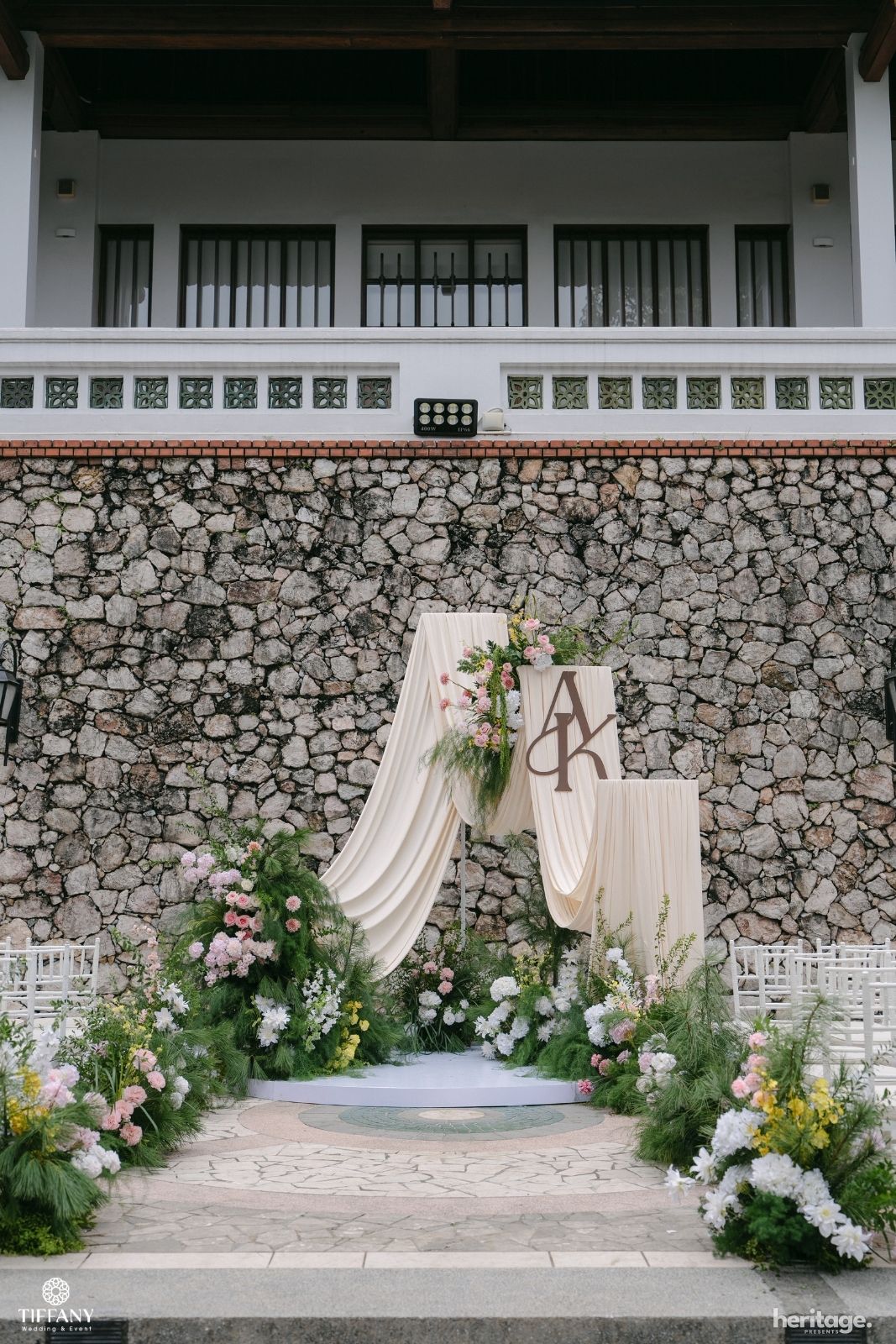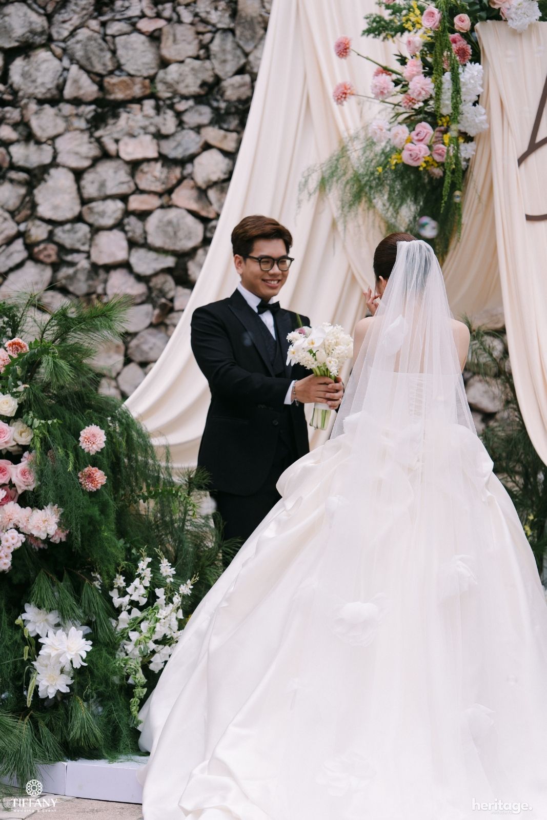 Giữa bức tường đá cổ kính và sắc xanh mát lành từ hoa lá tại Sheraton Hanoi, buổi lễ Vow hiện lên dịu nhẹ như chính cách họ đã chọn để ở bên nhau: lặng lẽ, không phô trương.