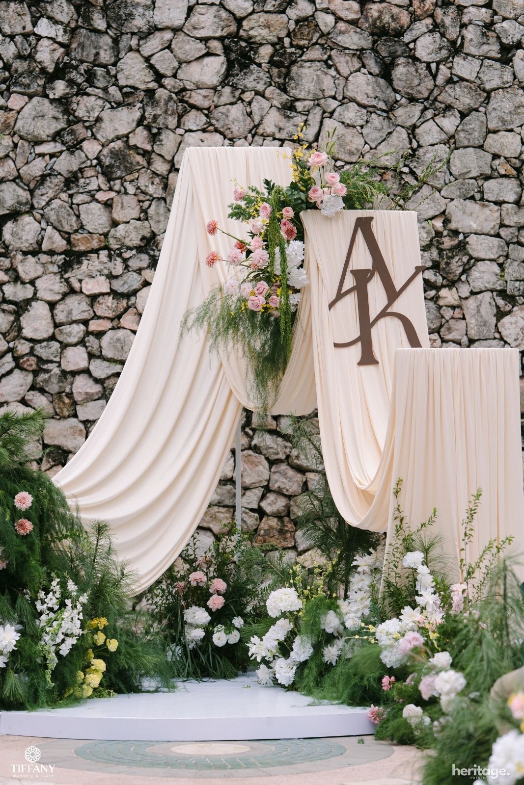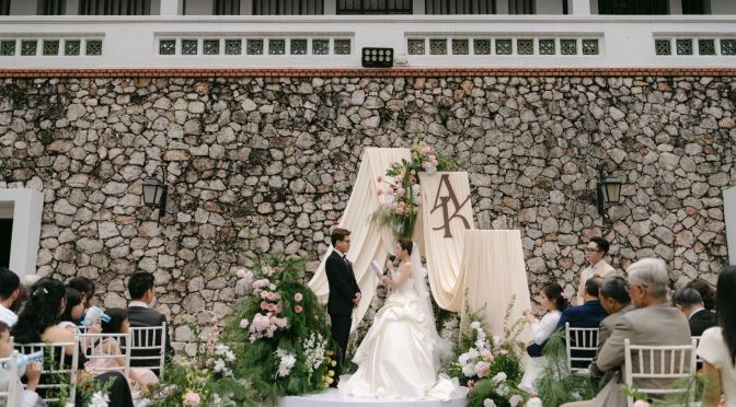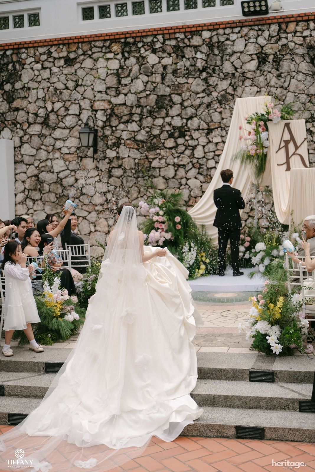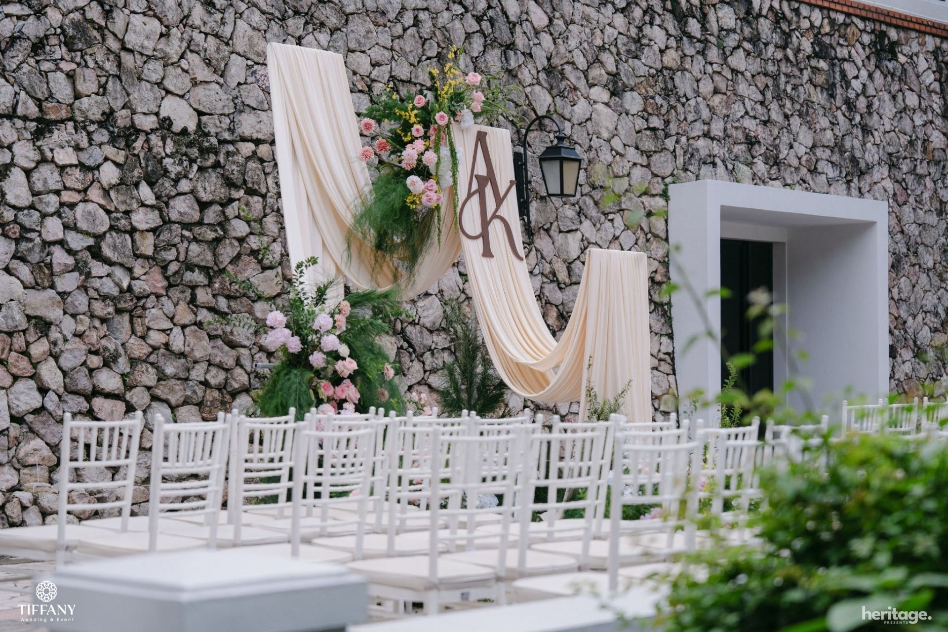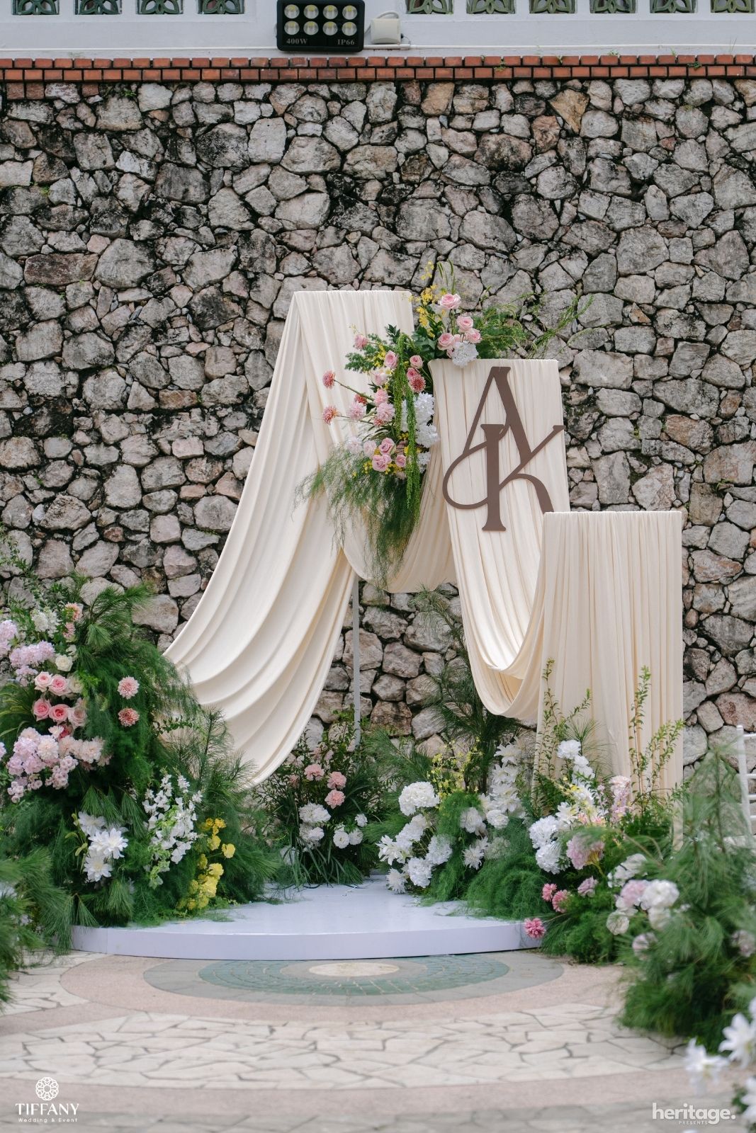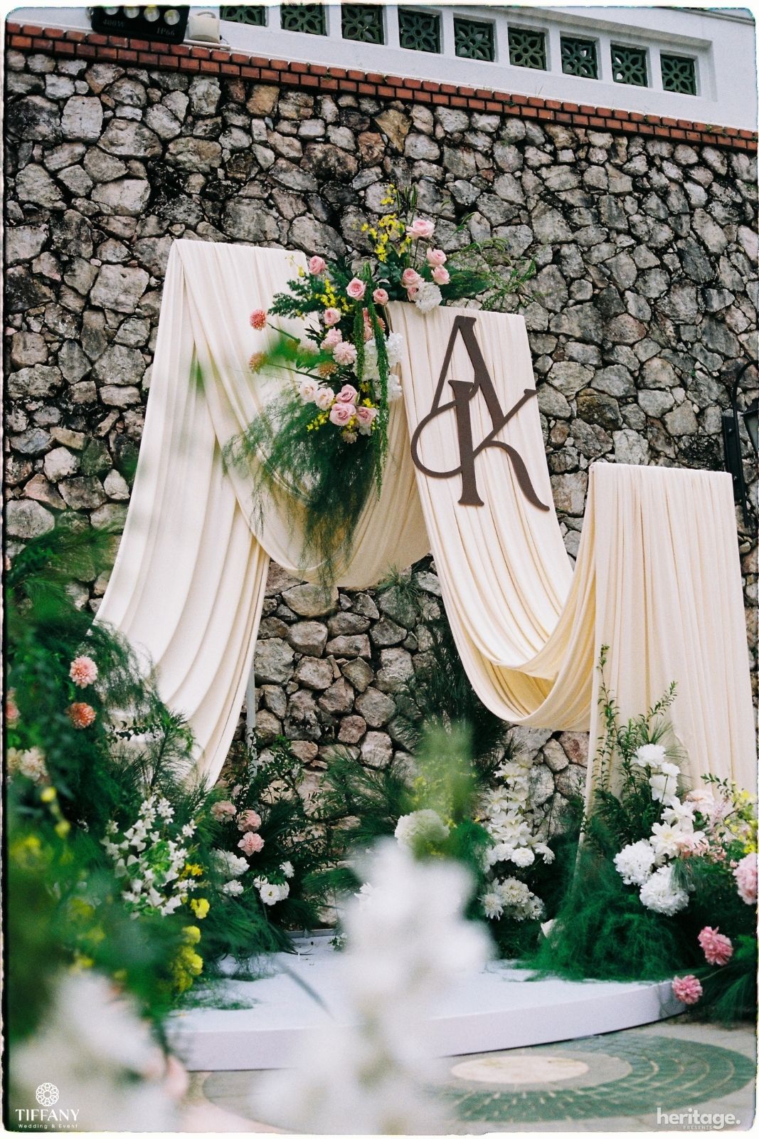 Giữa bức tường đá cổ kính và sắc xanh mát lành từ hoa lá tại Sheraton Hanoi, buổi lễ Vow hiện lên dịu nhẹ như chính cách họ đã chọn để ở bên nhau: lặng lẽ, không phô trương.