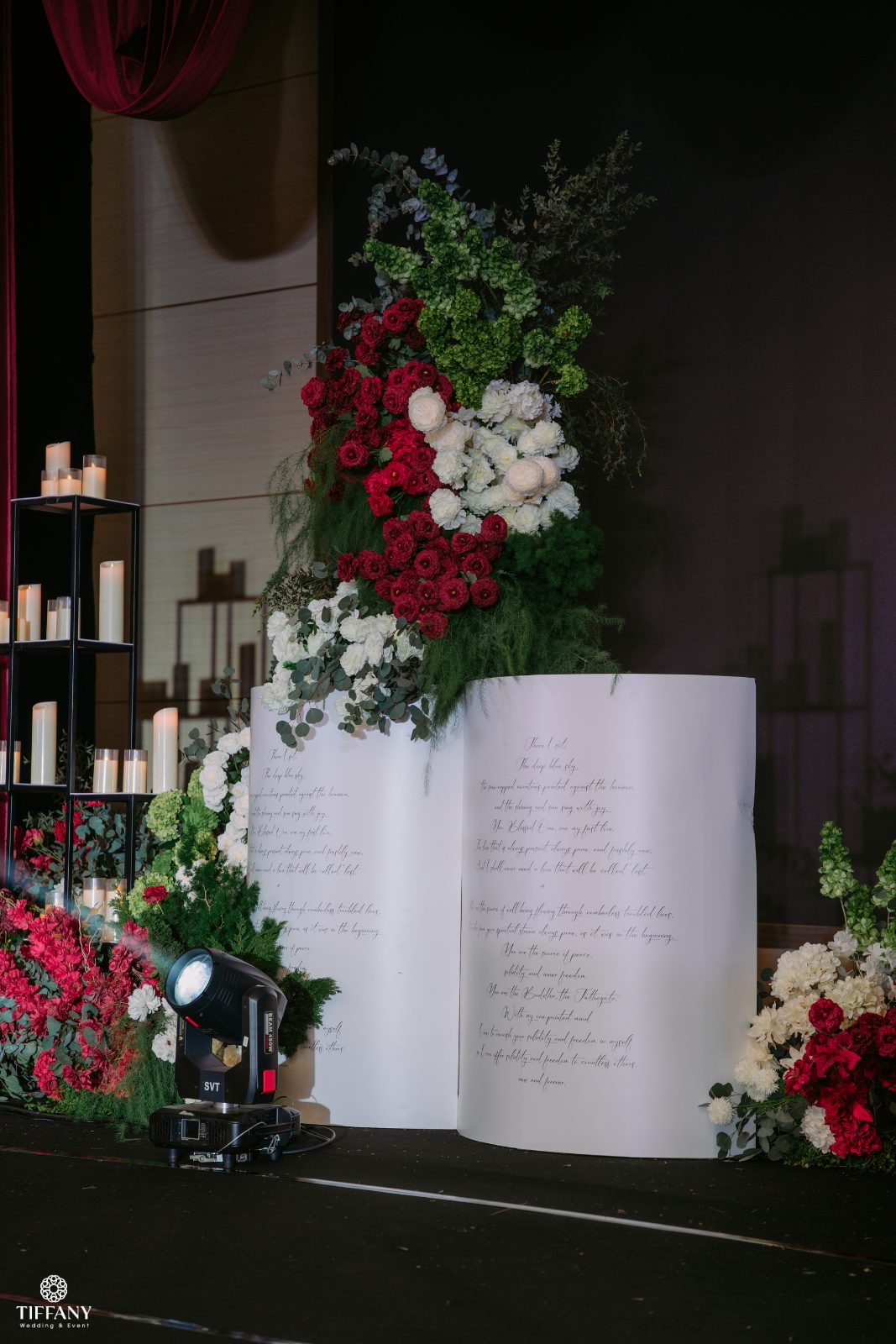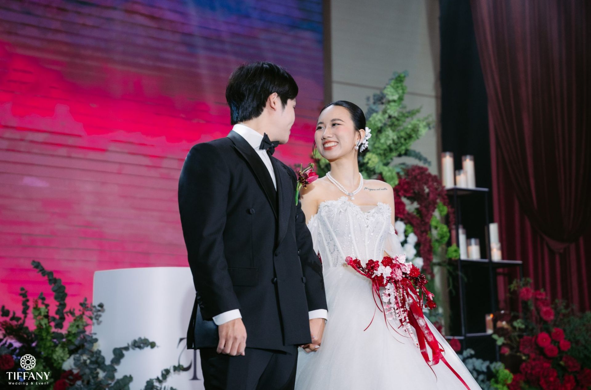Có những sắc màu không chỉ để trang trí, mà để lưu giữ cảm xúc. Với 𝗖𝗿𝗶𝗺𝘀𝗼𝗻 𝗘𝘁𝗲𝗿𝗻𝗶𝘁𝘆, Tiffany Wedding lựa chọn gam đỏ burgundy trầm làm ngôn ngữ dẫn dắt xuyên suốt toàn bộ lễ cưới – sắc màu của đam mê, chiều sâu và những cam kết không phai theo thời gian.