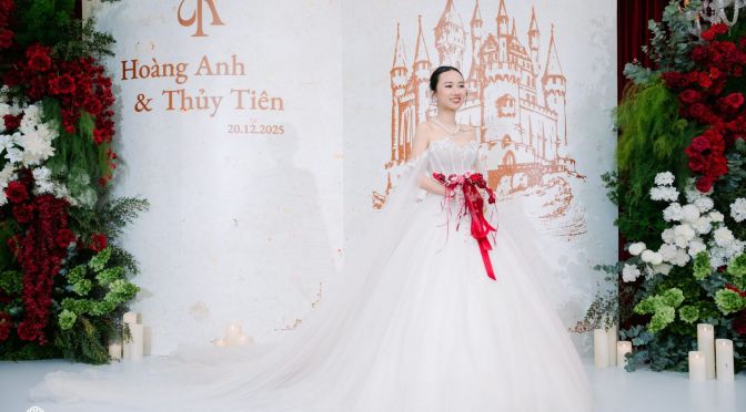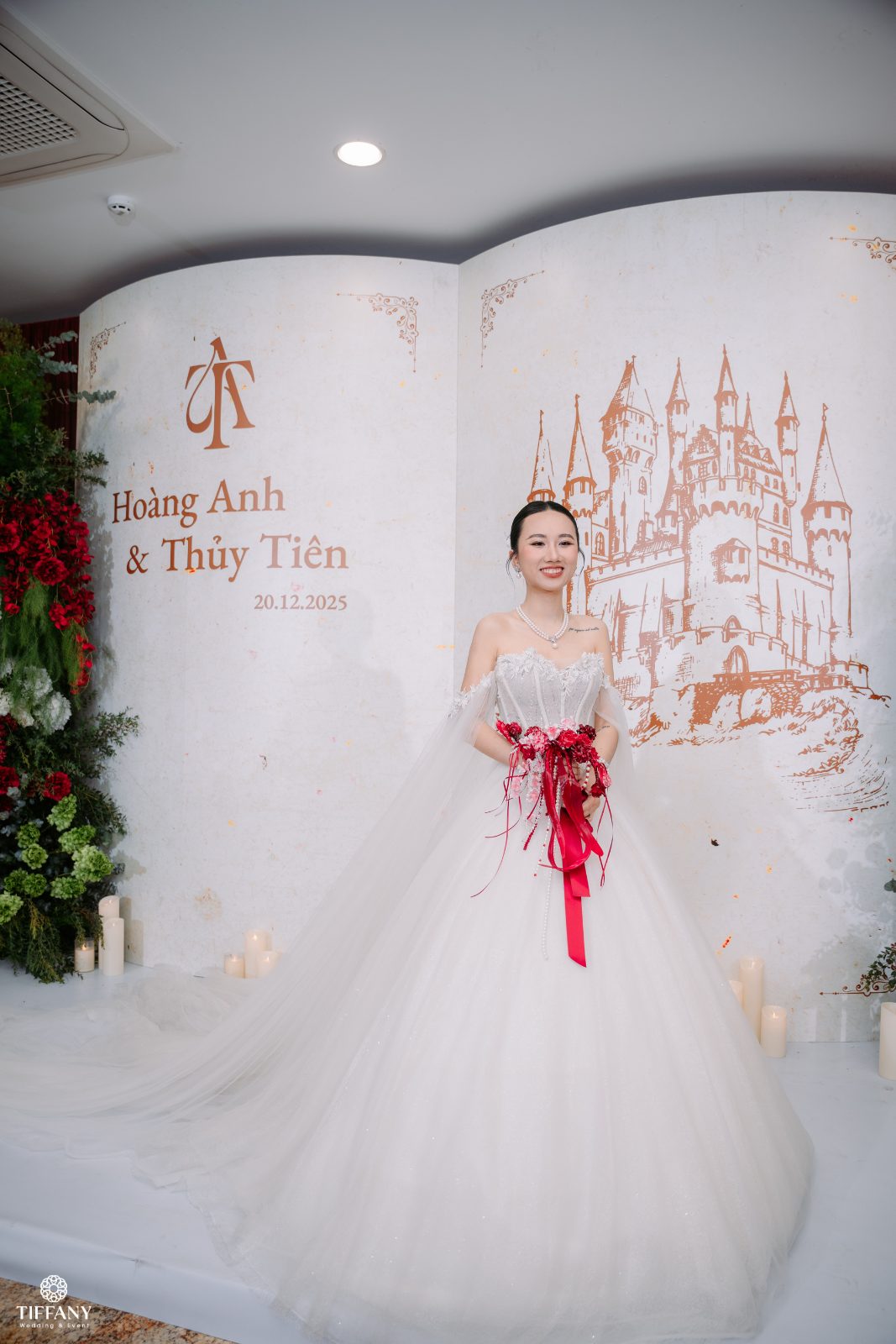 Từ khu vực chụp ảnh mang hơi thở cổ tích, nơi cô dâu chú rể dành cho nhau những khoảnh khắc riêng tư đầy cảm xúc, đến sân khấu nghi lễ trang nghiêm – nơi lời thề được cất lên trước gia đình và bạn bè, mọi chi tiết đều được tính toán để cảm xúc được chuyển tiếp liền mạch, tự nhiên và trọn vẹn trong cùng một câu chuyện.